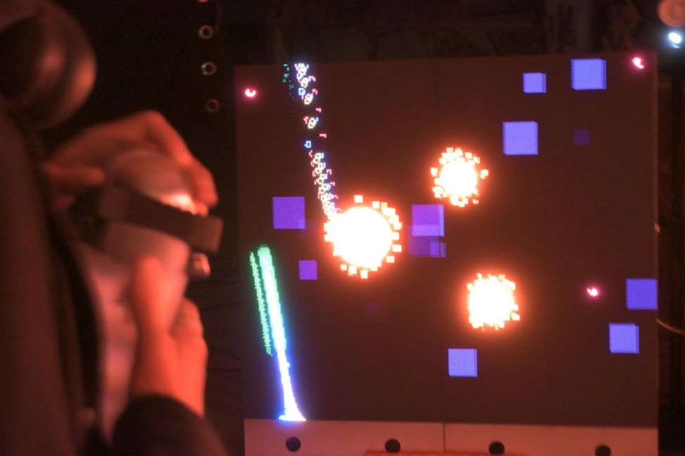 Ωmega is a cooperative experience where every player control a spaceship using a custom ball controller. They are tasked to recreate a melody by picking up music notes.