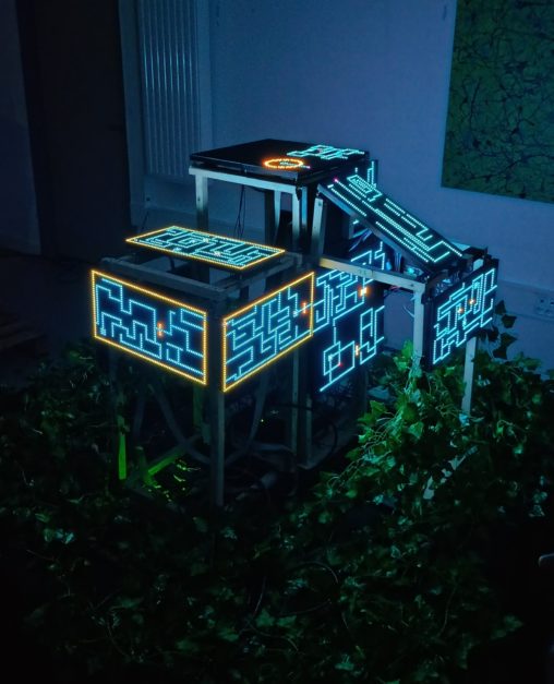 Hanging by a thread is a 3D labyrinth made of LED matrix. Using a custom spool controller, the player must find the exit while avoiding the minotaurs. Created…
