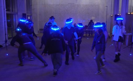 Synch.Live is a joyous, live action cooperative game, modeled on flocking birds. Groups of 10-20 players wearing light up hats try to synchronize their hat lights, without talking…