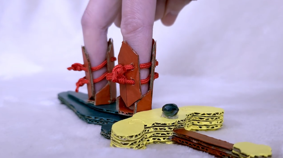 A co-operative sword-riding game played with custom Tech Deck-like controllers.