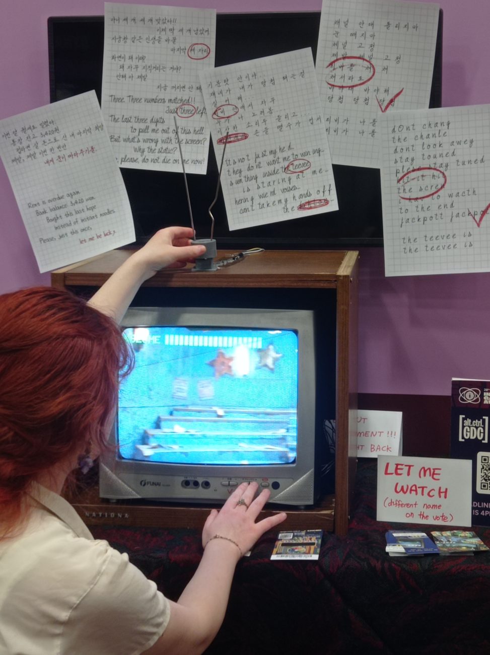 Let Me Watch (previously known as Do Touch That Dial) is a horror game played with an actual CRT TV. You’re trying to watch the lottery results but weird anomalies keep messing up with the program. Touch the dials, move the antenna and try to get things back to normal.