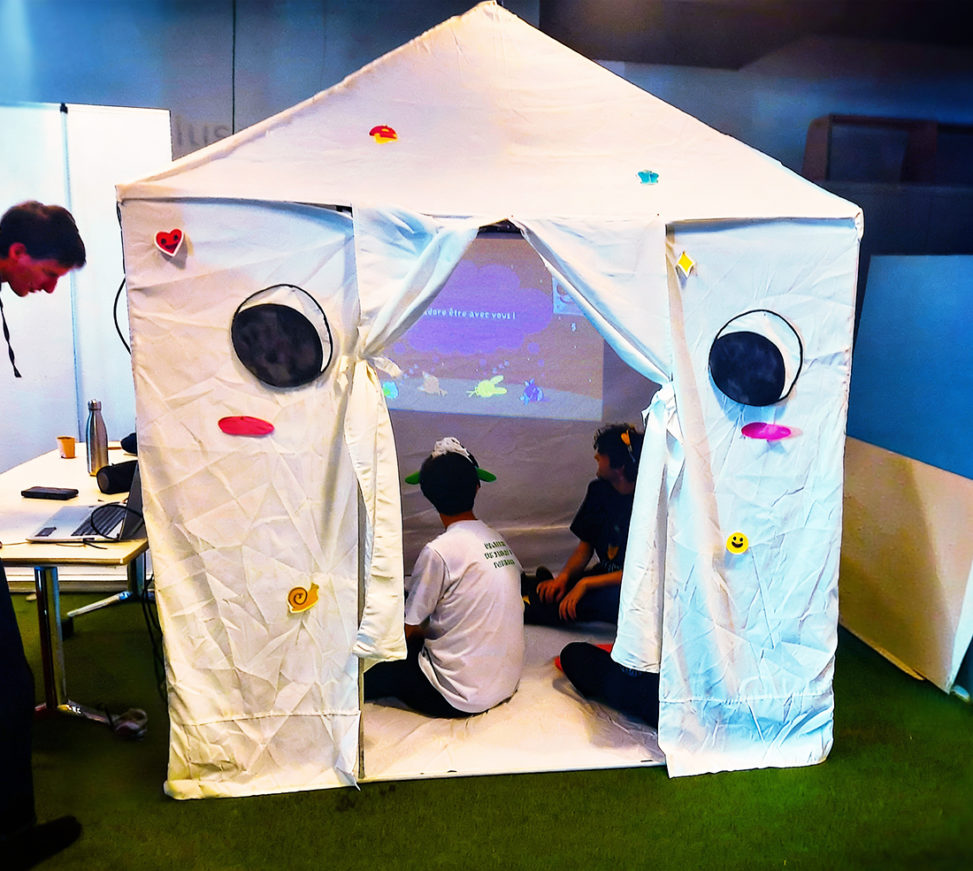 Madame Cabane is an installation using alternative controllers that presents itself as a simple children’s rhythm game. Play in harmony with your friends by activating the cabin’s toys to make your mountain grow. Everything is designed to help you improve together: listen to it carefully! But how far will you obey when the game seems unfair? What impact will your disagreement have on your friends? And most importantly, when did you stop having fun?